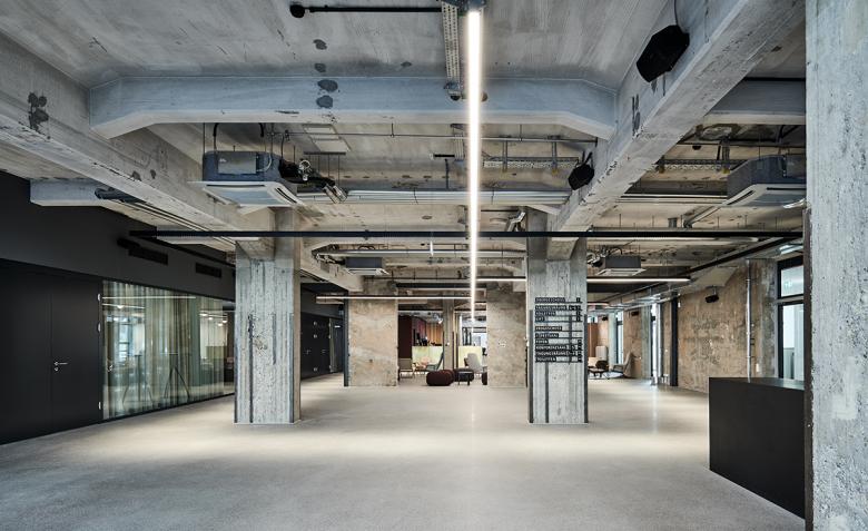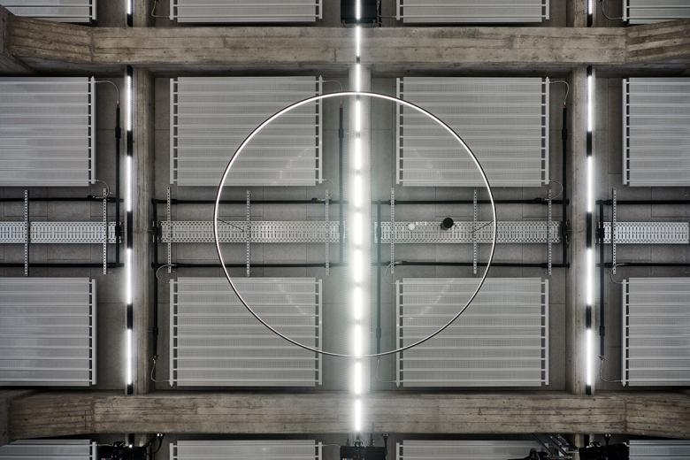 Ergänzt werden die leuchtenden Lebensadern durch abgehängte Ringleuchten, für das Projekt entwickelte Sonderanfertigungen. Sie erinnern in Form und Anmutung an traditionelle Fassreifen und stellen auf diese Weise einen Bezug zur historischen Nutzung des Areals her.