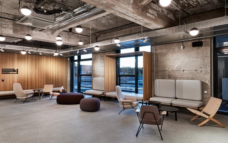 Als Grundidee für das Beleuchtungskonzept entwickelte candela eine Lichtmatrix aus vertikalen und horizontalen Lichtlinien. Über alle Räume und Funktionen hinweg, vernetzt dieses fluide Leitsystem die unterschiedlichen Nutzungsbereiche miteinander.