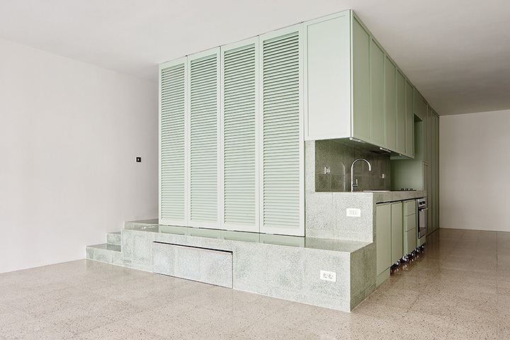 Reforma de una vivienda de 70m2 ubicada en la calle Casanova de Barcelona. La intervención pretende compactar habitación, cocina y baño en un espacio reducido para compaginar el uso de vivienda con el de estudio fotográfico.