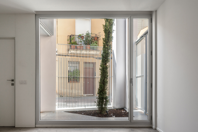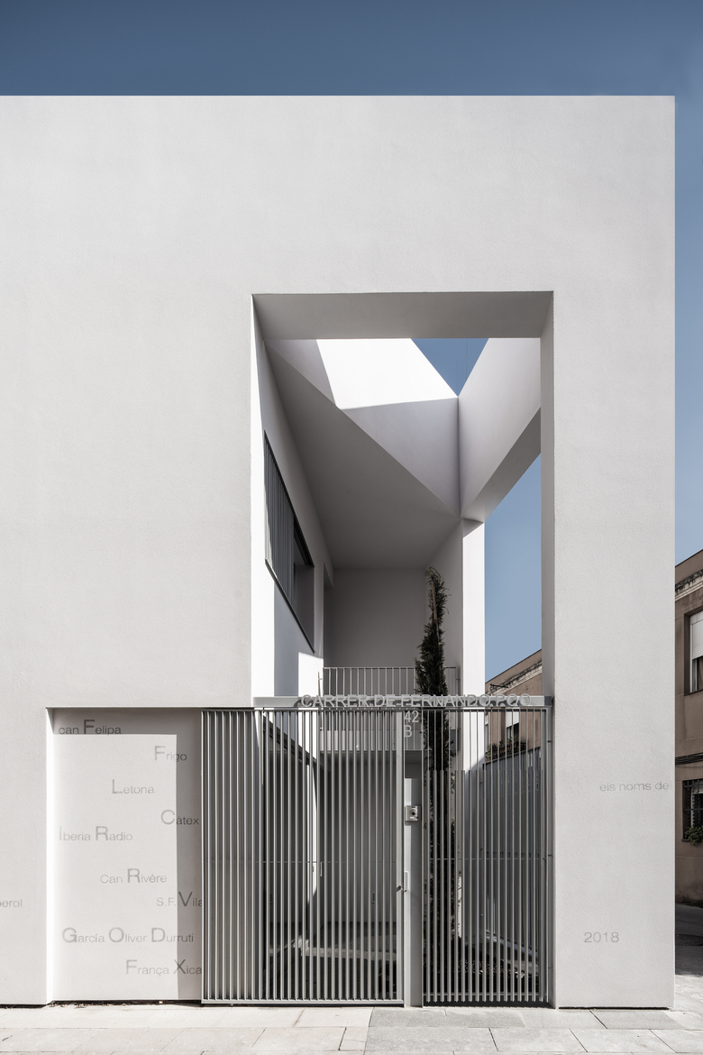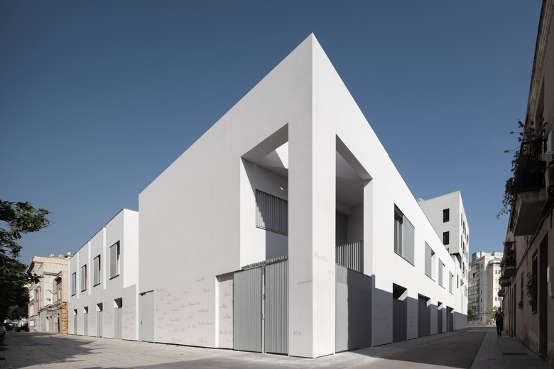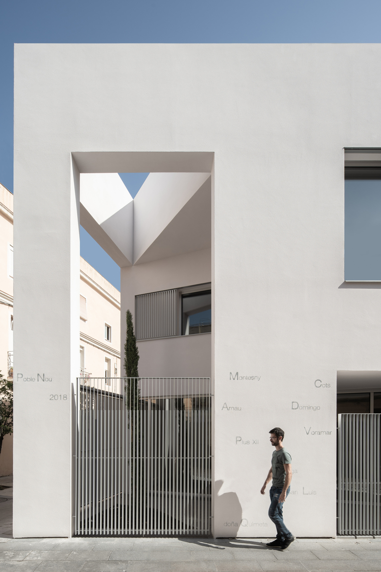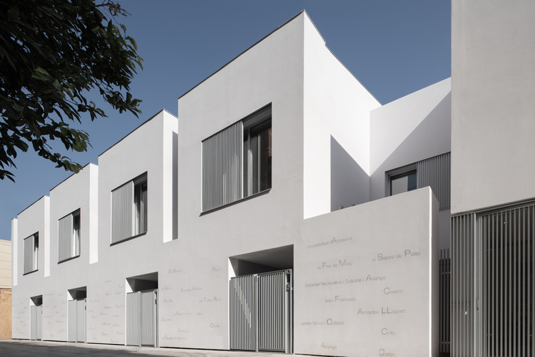 The twelve houses are anchored in the urban tradition of Poble Nou and display this in a small intervention in their ground-floor walls which provides a reminder of names from its history.
