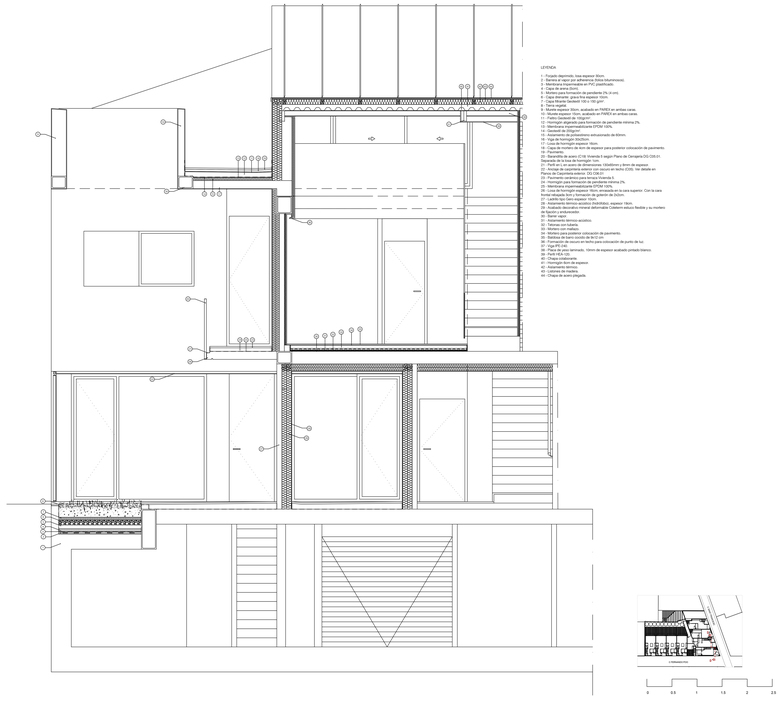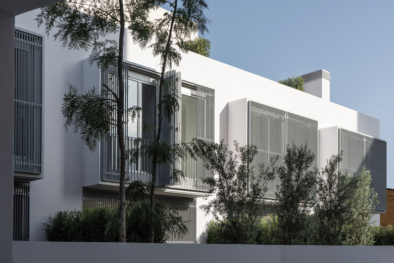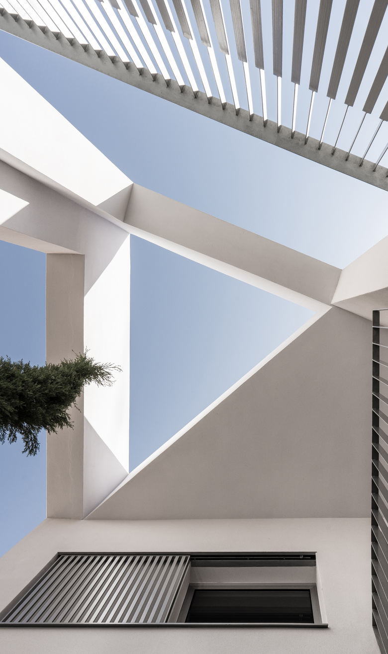In all of the cases the buffer of the small entrance patios protected with low grill fencing lends density to the line between public and private, and contributes to an energy strategy which thanks to external thermal insulation (ETI) and to aerothermal energy attains maximum efficiency. The window spaces on the first floor exceed their functional condition and acquire the scale of the street by means of large openings and sliding elements. This frontier between the domestic and the vision of the whole is lessened even further in the interior of the intervention, where the layout of the parking area permits the planting of imposing native trees. The excellent orientation of the houses towards sun and sea reveals a small landscaped haven in the midst of the city.
