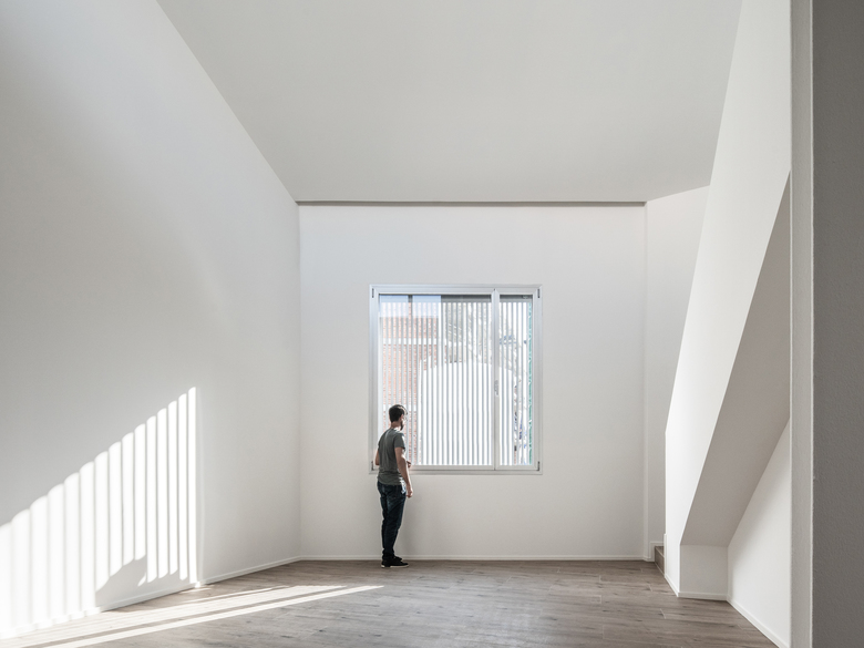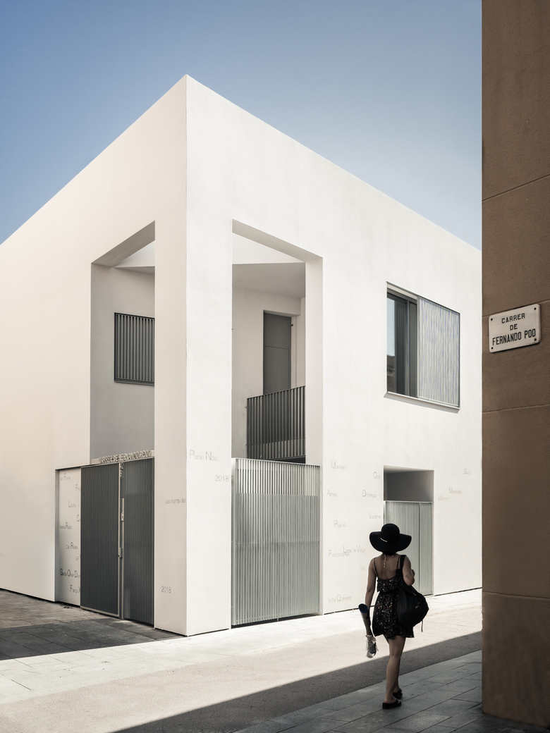 Located in the old fabric of Poble Nou, at a transitional point between the historic axis of María Agulló, the Rambla de Poble Nou, and the approaches to the beach, the project responds to this dual condition. On the one hand, Calle Fernando Poo reasserts the traditional typology of the house, two-story housing that makes no secret of its individuality to the street. On the other, the corner, empty but with well-defined arrises that stand out against the sky, looks out at the city of Barcelona with its animated flux of inhabitants and visitors who flow beachwards.