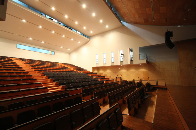 The specialization of a hall should not be incompatible with its versatility. We should organize different events such as concerts, theater plays, conferences, balls... but without denying or hiding its main function. This is the case of Vilafranca del Pendès Auditorium. With a 504 assistants capacity, and despite its specialization for the live music without amplifiers allows an extraordinary vitality due to its variety of configurations.