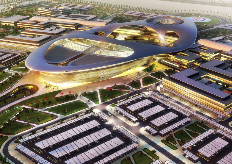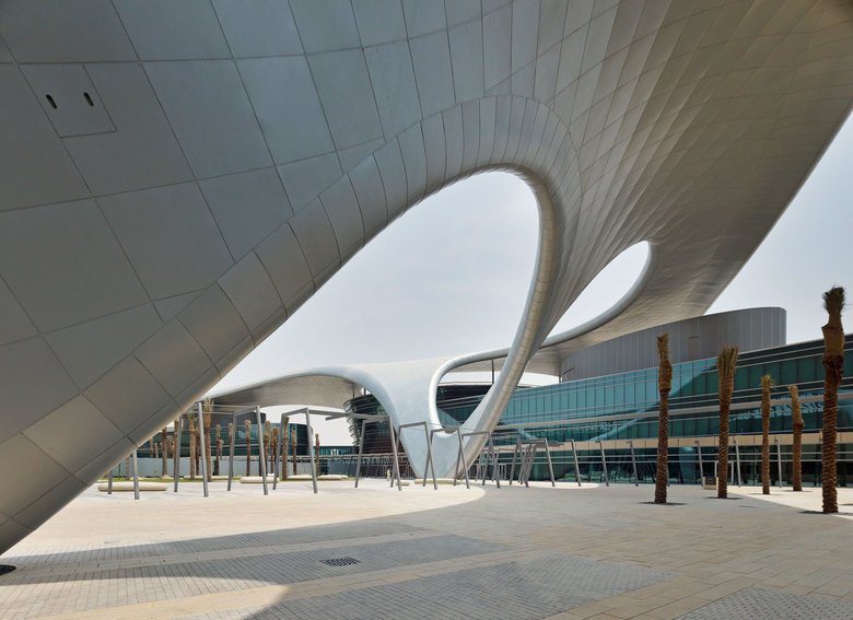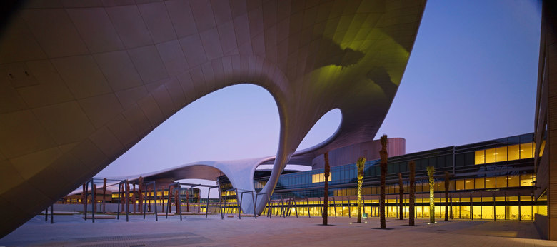 Mit der deutlichen Markierung des Mittelpunkts findet der neue Campus seinen Schwerpunkt. Formal werden die zentralen Funktionen der Universität organisch zusammengebunden - inspiriert von den fließenden Formen der Wüste wie auch des Schleiers. Funktional aktivieren die integrierten, Schatten spendenden Außenräume die Kommunikation. Emotional gewinnt der Wissenschaftsbetrieb in der Nachbarschaft weiterer kultureller und sportlicher Großbauten ein weltweit einmaliges und unterscheidbares Bild seines Anspruchs.