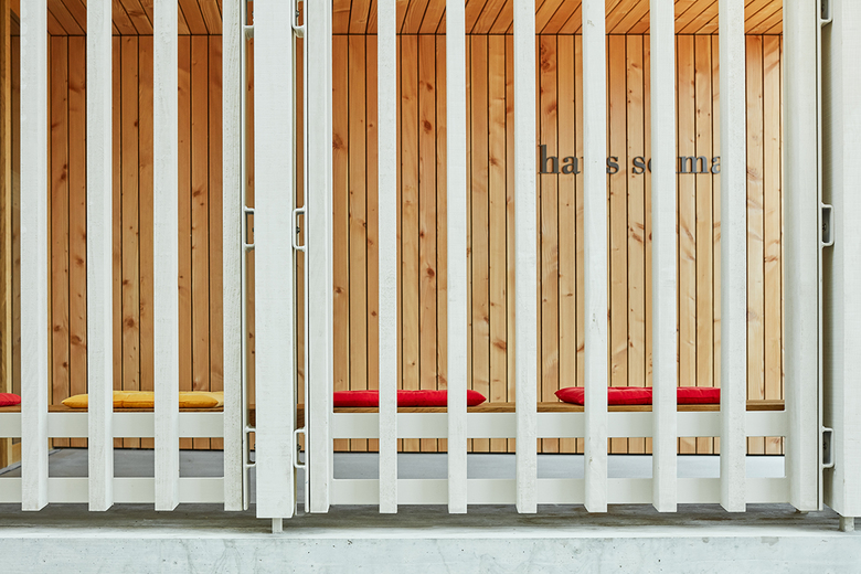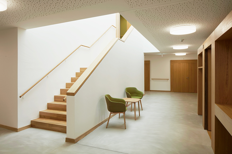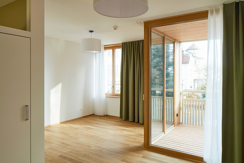 Das Bürgerheim Arbon mit der bestehenden Villa "Quisisana" wird mit einem zweigeschossigen Erweiterungsbau zu einem Pflegeheim ergänzt. Die Typologie des in die Parzellentiefe greifenden Zweckbaus kombiniert mit geringer Gebäudehöhe ist im Wohnquartier in Arbon bereits bekannt. Die Einordnung des Erweiterungsbaus in das Quartier ist gegeben. Das neue Volumen ordnet sich der Villa respektvoll unter. Die strukturierte Holzfassade verleiht dem Gebäude eine Feingliedrigkeit welche durch sanfte Knicke die Längsfassaden optisch in ihrer stattlichen Gesamtlänge brechen. Die Begegnungsräume und ein grosszügig gedeckter Aussenbereich sind erdgeschossig zum Park situiert. Die Erschliessungswege führen um einen zentralen Lichthof mit Blick auf die frequentierten Gemeinschaftsräume des Erdgeschosses. Die zweigeschossige Fassadengliederung begünstigt einen ruhigen Gesamteindruck und der auskragende Dachabschluss referenziert im Duktus mit der bestehenden Gebäudesubstanz.