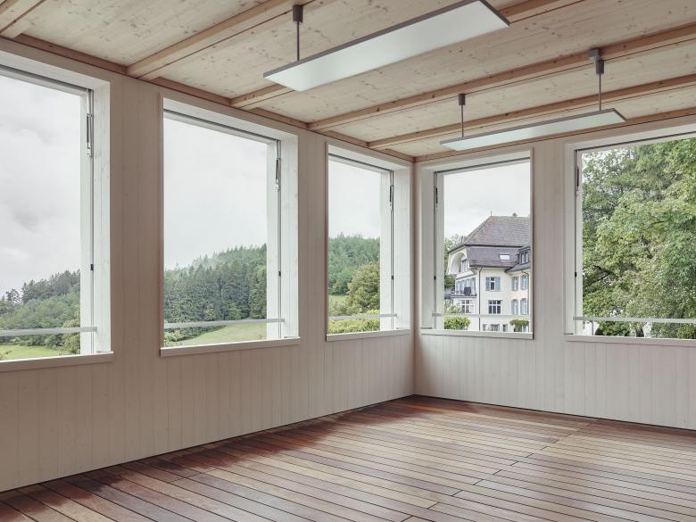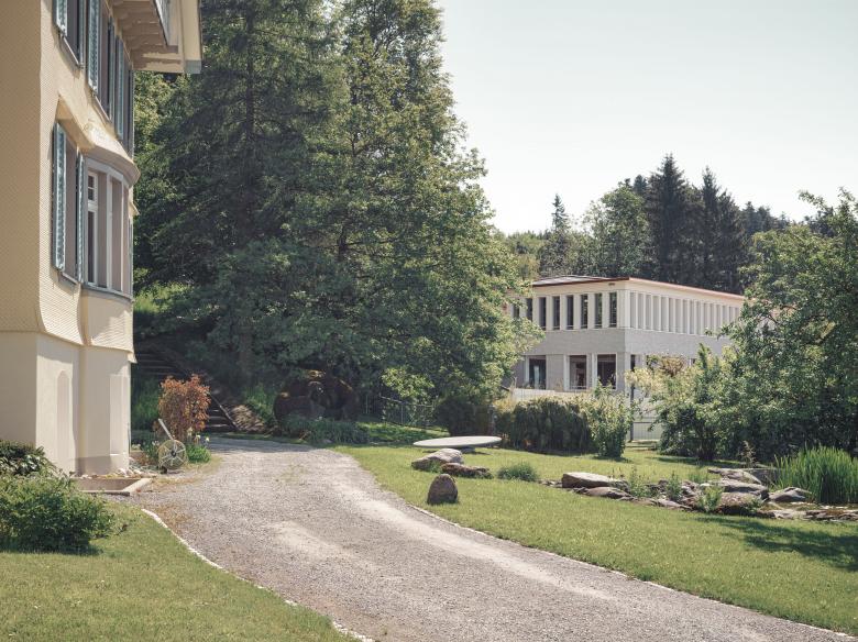 Der Ergänzungsbau des Schulheim St. Michael fügt sich als längliches Volumen in die Landschaft und das bestehende Gebäudeensemble ein. Der Neubau übernimmt die Prinzipien des Hauptgebäudes und schmiegt sich selbstverständlich an den leicht gegen Westen gedrehten Hang. Die architektonische Gliederung in der Form eines Andeutens eines Dach- oder Mansardengeschosses vermittelt zum südlichen Schulhaus. Der Projektvorschlag bietet eine einfache Grundstruktur als soliden Rohling für die tägliche Schulnutzung.