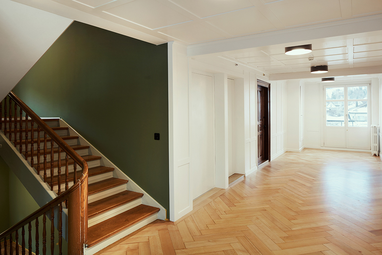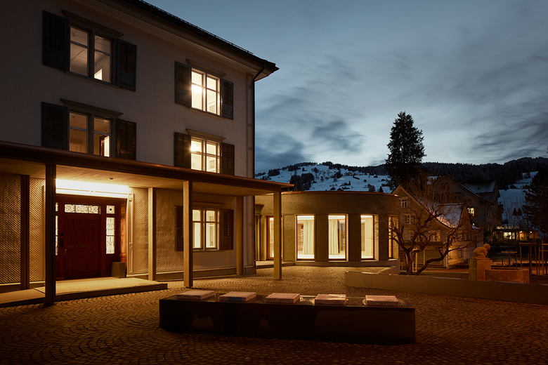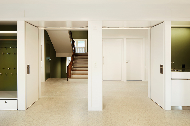 Der Projektvorschlag gründet auf der Idee eines einladenden Kirchgemeindezentrums mit offenen Türen für alle. Die Kirchgemeinde verbindet als Gastgeberin die Dorfteile, Aussengegenden, Generationen, Kulturen, Konfessionen, Religionen und Lebenswelten. Das Raumkonzept lässt die Bespielung verschiedenster Zielgruppen zu. Der neue Pavillon symbolisiert dieses Forum mit der eigenständigen Form. Der Mehrzweckraum wird als einziger Hauptraum aus dem bestehenden Pfarrhaus ausgelagert. Ein kleiner Verbindungstrakt führt vom Saal in das Pfarrhaus mit dem grosszügigen Foyer. Die Küche gliedert sich erdgeschossig direkt an das Foyer und kann den Saal sowie das Foyer optimal bedienen. Der Pavillon kann als einladender, flexibler Raum genutzt und bespielt werden.