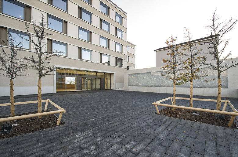 „Ein Haus für ein Jahrhundert“. Das neue Gemeindehaus bietet den baulichen Rahmen für eine zukunftsorientierte Verwaltung von Uzwil. Das Projekt „Löwenherz“ vereint die funktionalen Anforderungen bezüglich Verwaltungsabläufen und übersichtlicher Besucherführung. Durch die räumlich klare Trennung zwischen Publikums- und Mitarbeiterbereichen wird die Sicherheit am Arbeitsplatz gewährleistet. Als Energiestadt baut Uzwil das neue Gemeindehaus mit hohen Anforderungen an die Ökologie, Energieeffizienz und an das Raumklima für behagliche Arbeitsplätze. Im Gebäude bringen grosszügige Oberlichter Tageslicht in die fünfgeschossige Eingangshalle. Die frei begehbaren Publikumsbereiche liegen allesamt innerhalb der Gebäudekerne und sind klar von den Arbeitsplätzen der Mitarbeitenden getrennt. Im mittleren Geschoss befindet sich die Seminarzone mit den Sitzungszimmern. Dank viel Tageslicht und interessanten Blickbezügen durch die Innenfenster entsteht im Gebäudeinnern eine Drehscheibe der Kommunikation. Das Trauzimmer und der Personalbereich befinden sich kombiniert mit einer Dachterrasse im höchstgelegenen Geschoss.