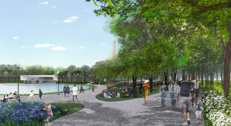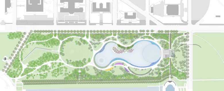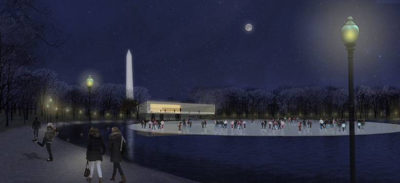 By maintaining the Gardens as the enclave that it is and increasing that experience through landscape interventions and the simple architecture of the pavilion on its promontory, this iconic, multi-programmed public realm offers locals and visitors a welcoming place to retreat from the touristic intensity of the National Mall.