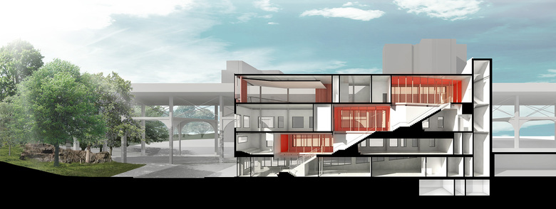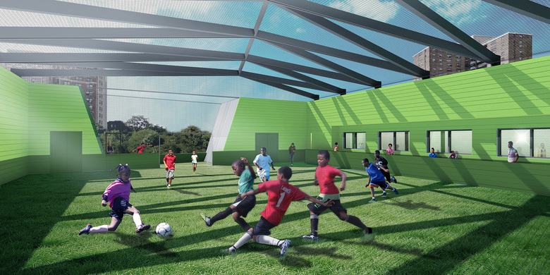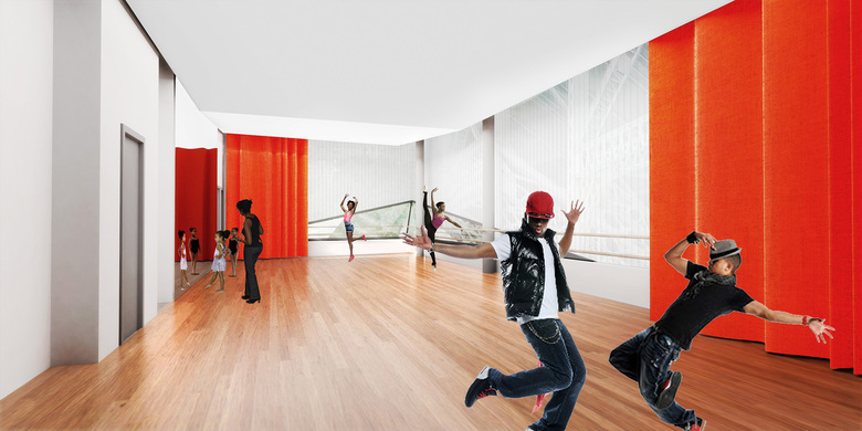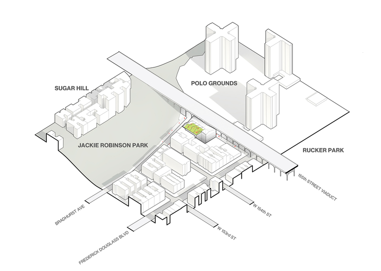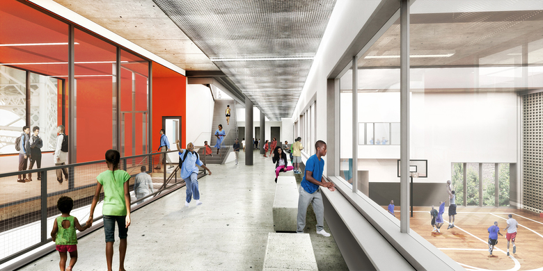 Located on a prominent corner site, with one face toward the historic viaduct on 155th Street and the other toward Jackie Robinson Park, the building is designed as both a beacon and attractor. Historically, club membership decreases as members mature, so special attention was given to make the building exciting to teen members. In addition to visual arts, dance, music and production studios, a 500-square-foot Skybox overlooking the gym and Jackie Robinson Park offers teen members an age-specific place to socialize and gather. All members will benefit from educational spaces for tutoring and quiet learning, a screening room, digital media and technology labs, and spaces for dining and socialization. Once complete, the new Harlem Clubhouse will enable Madison Square Boys & Girls Club to expand its provision of life-changing services to the young people of Harlem.