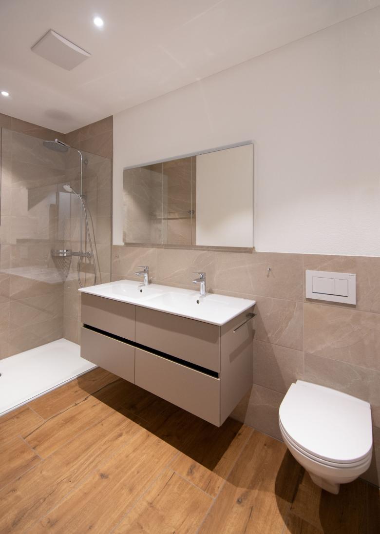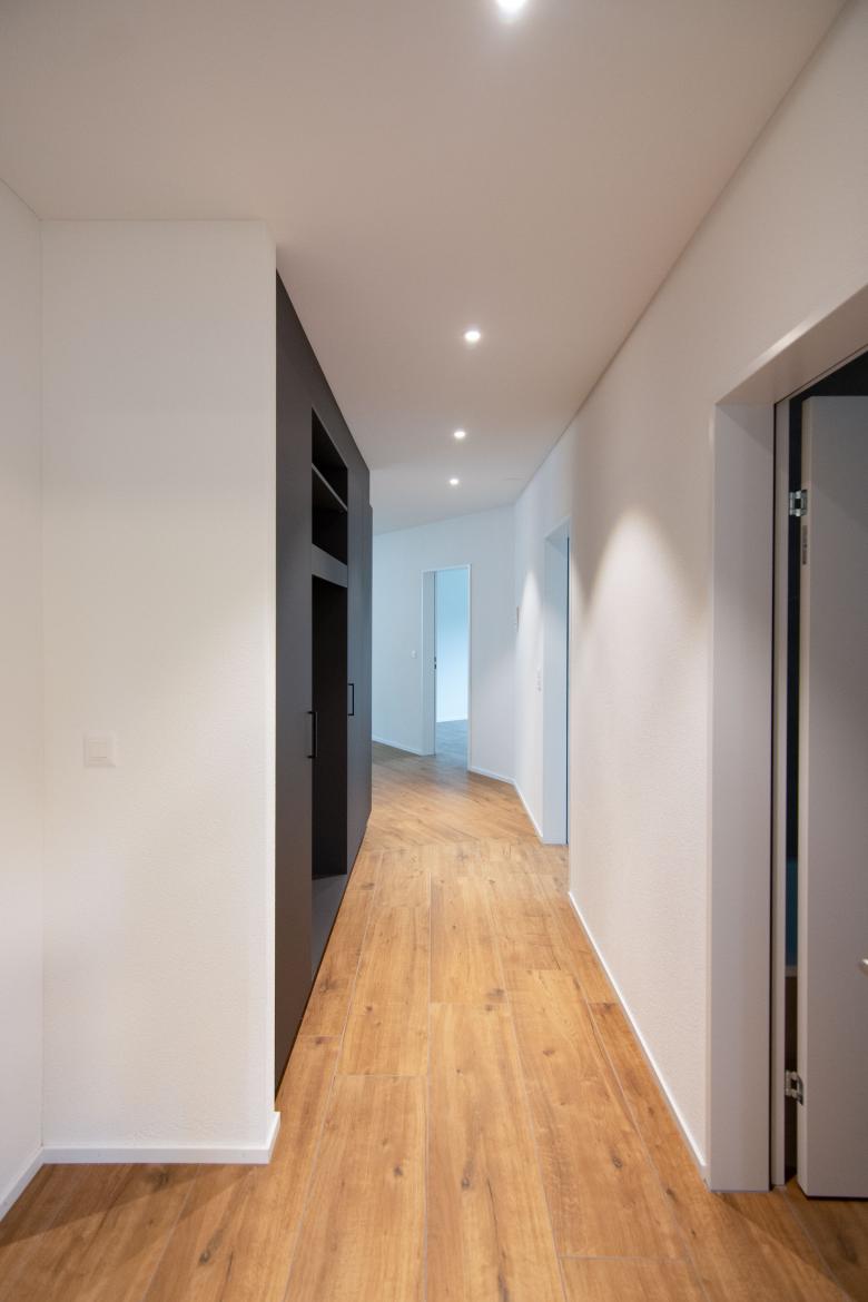 Die Wohnungen werden auf 3 Geschosse aufgeteilt. Im Erdgeschoss befindet sich eine grosszügige 4.5 Zi-Wohnung mit direktem Gartenzugang. Das Obergeschoss beinhaltet eine 3.5 sowie eine 2.5 Zi-WHG. Die 3.5 Attikawohnungen sind mit grosszügigen Dachterrassen ausgestattet. Durch die süd- und südwestliche Orientierung wird eine optimale Besonnung gewährleistet.
