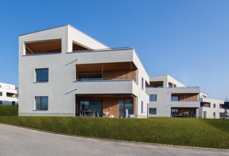 Die Parzellen dieser Wohnüberbauung befinden sich an leichter Hanglage, in einer ruhigen Einfamilien- und Mehrfamilienhaus-Umgebung. Die Überbauung besteht aus acht 5-eckigen Baukörper mit je 4 Wohneinheiten. Die Volumen sind losgelöst von einer bestimmten Orthogonalität. Dies aus diversen Gründen. Durch das Loslösen von parallelen Linien entstehen differenzierte und spannende Zwischenräume, welche mäandrieren durch die Umgebung verlaufen. Weiter werden grösserer Distanzen dort geschaffen, wo sie benötigt werden. Dies kommt der Belichtung wie auch der Aussicht der einzelnen Wohnungen zu gute. Zudem werden zum Strassenraum Räume geschaffen und ein attraktiver Strassenraum generiert.