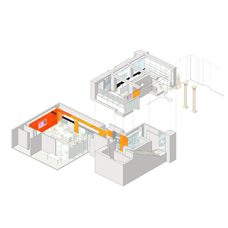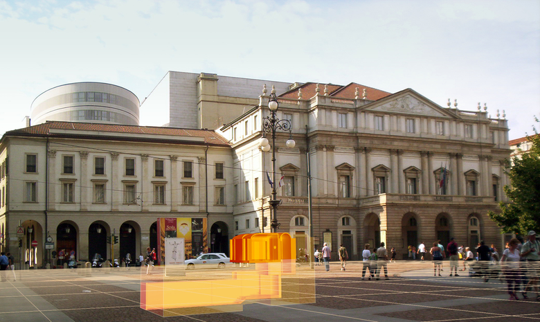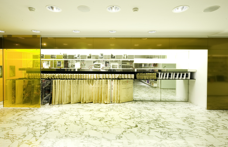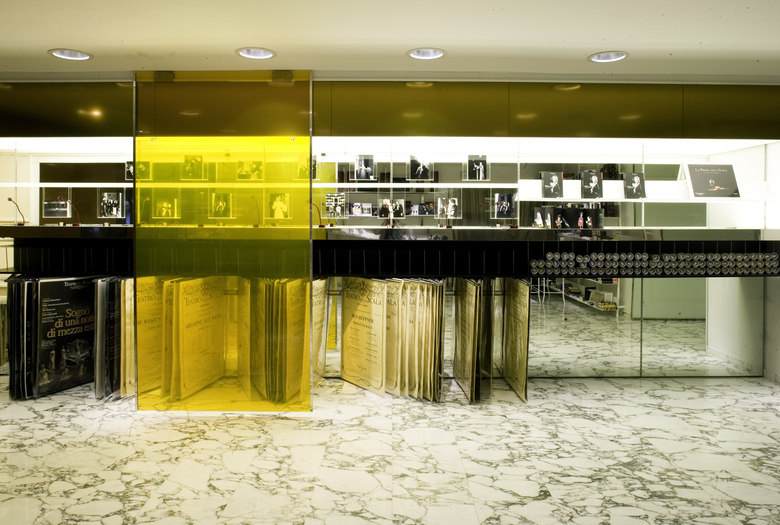 Il Bookshop della Scala è caratterizzato da una gerarchia semplice di esposizione, lo spazio è facilmente fruibile ma con un carattere perturbante, offre uno scambio dinamico tra il teatro e la città.