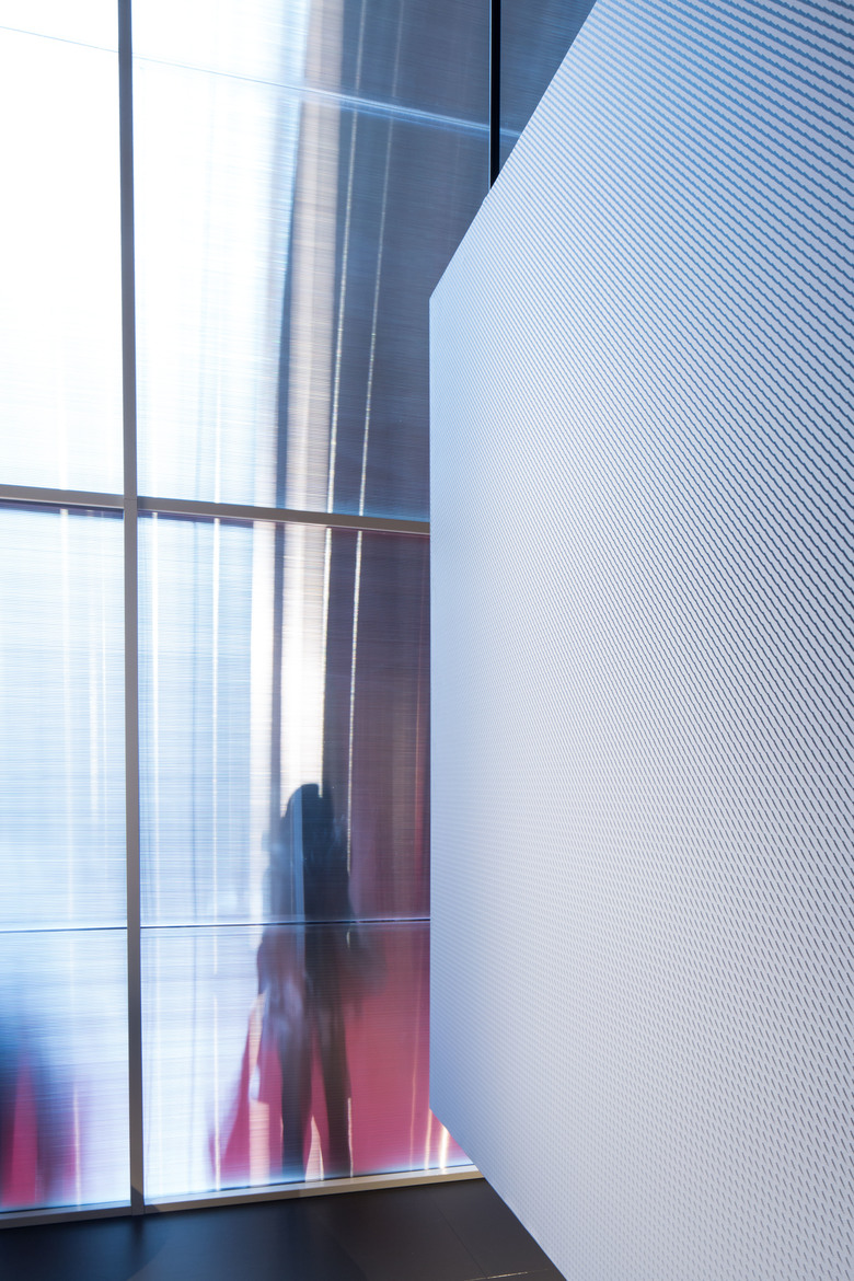 Il tema principale del progetto riguarda il vuoto e la tensione. Gli scenari si semplificano per dare continuità al rapporto tra oggetto e spazio. È come se la tensione tra gravità e sospensione dei piani verticali provocasse uno scollamento dell’orizzonte visivo.