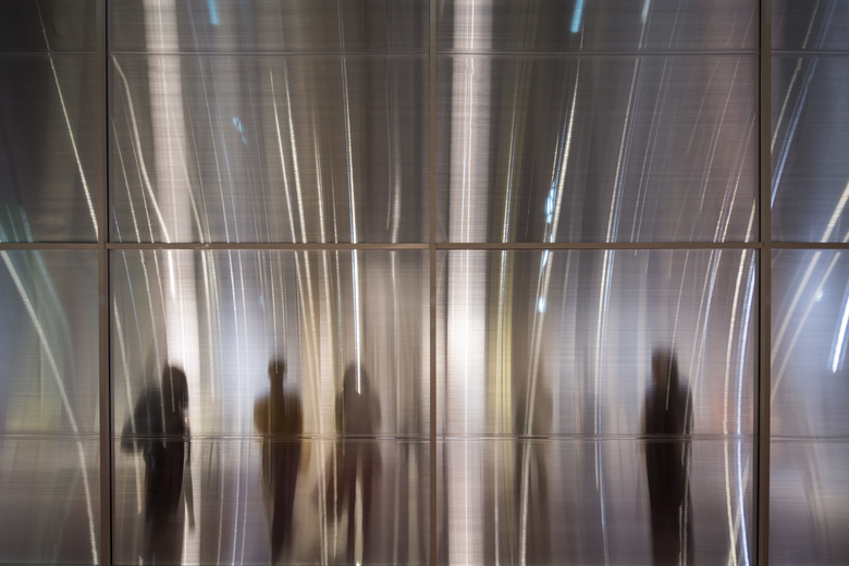 La chiusura in un contenitore definisce un momento di concentrazione in cui la semitrasparenza scorge il movimento in atto all’interno.