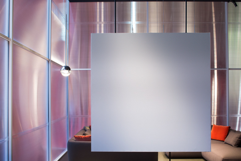 Si tratta di diaframmi racchiusi in una scatola semitrasparente che lascia intravedere accenni di interni.
