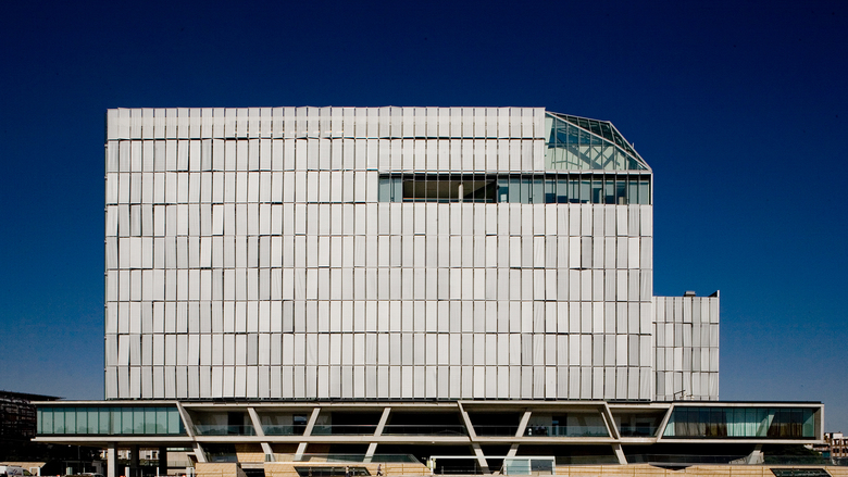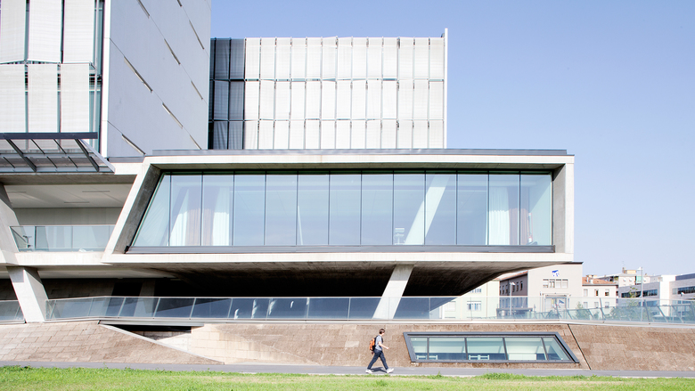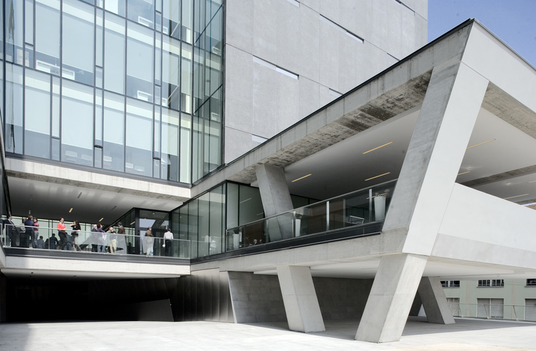 L’edificio è un ibrido tipologico, un edificio a basamento e un edifico su pilotis, un impianto che abbina l’incisività e la misura volumetrica dei corpi a stecca con la calma della corte interna e la lievità di un oggetto sollevato e trasparente con la rudezza del grande oggetto”naturale” sospeso.