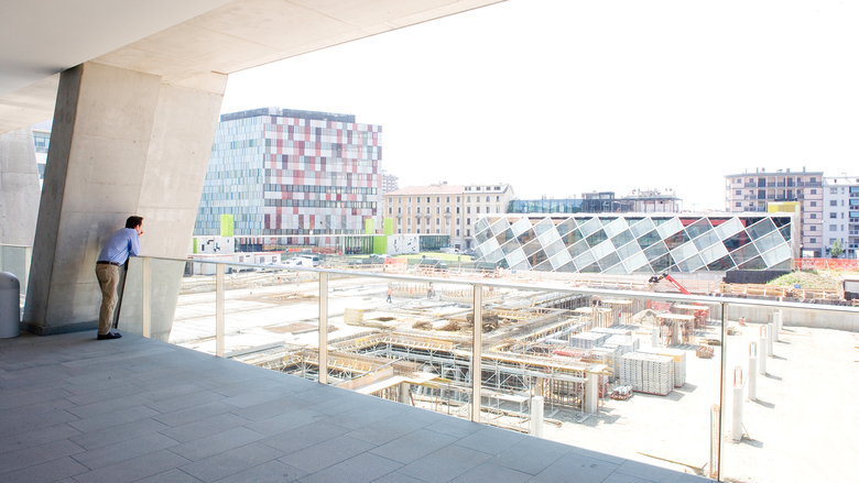 La nuova sede della Zurich assicurazioni è inserita nel masterplan per le aree ex Carlo Erba, un tempo destinate alla produzione industriale con attività sostanzialmente interna all’isolato, fisicamente recintato rispetto alla città e non attraversabile. L’opportunità di aprire questo perimetro e di far fluire all’interno il tessuto urbano ha fortemente condizionato ogni scelta progettuale operata sull’edificio: l’intero insediamento viene pensato permeabile, parte integrante del parco, l’interno pubblico dell’area uno spazio non solo di arrivo ma anche di attraversamento, dove lo spazio collettivo pubblico si ibrida con quello privato.