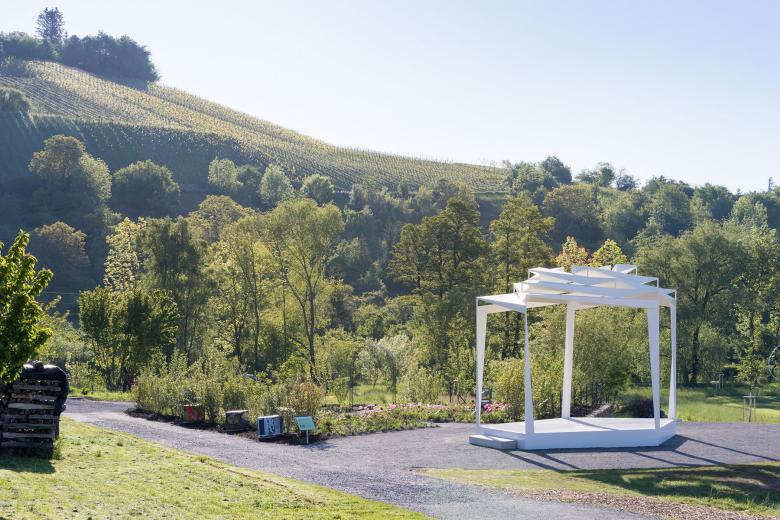 Der Rosenpavillon in Remshalden ist eine von 16 Stationen, die anlässlich der Gartenschau Remstal 2019 errichtet wurden. Er befindet sich an der höchsten Stelle des neuen Bürgerparks und bietet einen Rundumblick in die Landschaft. Er steht in der Tradition eines offenen Musikpavillons und ist Bühne, Treffpunkt und sichtbares Erkennungszeichen des Gartenschauareals in Remshalden.