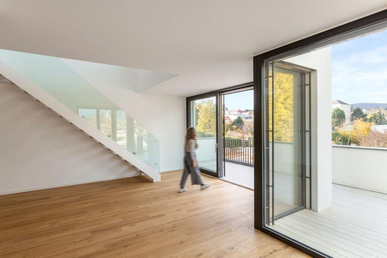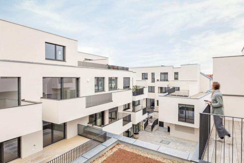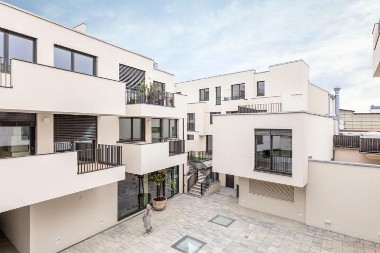 Alle 26 Wohnungseinheiten des Gebäudekomplexes verfügen entweder über eine private, begrünte und geschützte Terrasse, Balkon oder Loggia. Die Wohnungen sind loftartig geschnitten und von vielen Lufträumen, hohen Fenstern und hellem Licht geprägt. Die Größen der Einheiten variieren von 60m² bis 160m² und sind auf ein hochwertiges Wohngefühl ausgelegt.