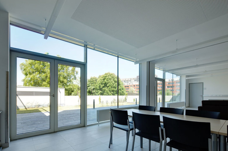 Die barrierefrei erschlossene Ambulanz befindet sich im unmittelbaren Eingangsbereich des Erdgeschoßes und ist direkt mit der Stationsführung räumlich verbunden. Die Stationsführung hat direkten Blickkontakt in die Garage, Garderobe, Straße sowie zur Schleuse und kann durch diese Situierung alle Abläufe im Haus wahrnehmen.