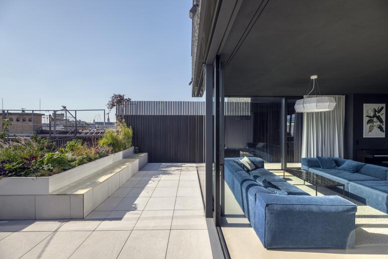 In a Viennese residential building constructed around 1900, two additional separate residential units were to be created in the course of an attic conversion. Our goal for this project was to create as many open spaces and terraces as possible while at the same time ensuring maximum privacy for the two residential units.