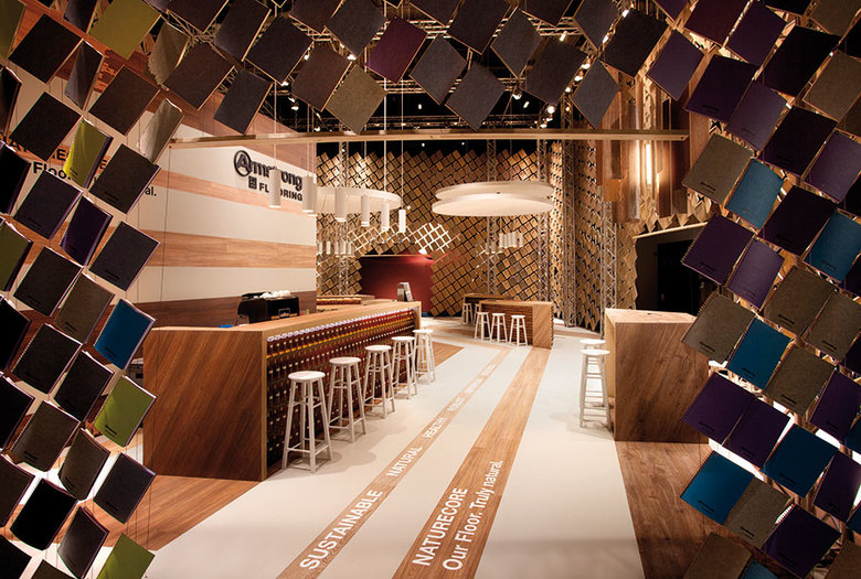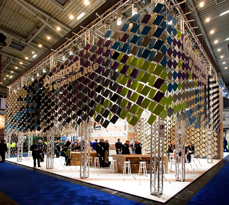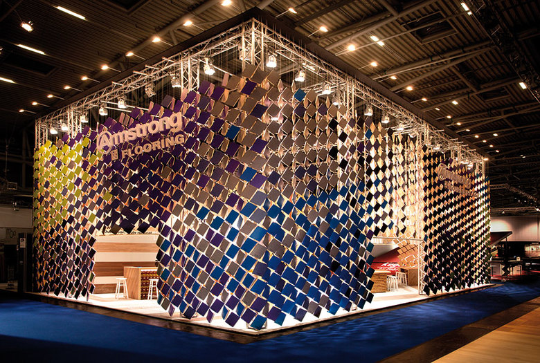 Die Enthüllung der Nachhaltigkeit – Nachhaltige Markeninszenierung. Farbenreich und schillernd – so inszeniert das Architektenduo Bochmann und Tandawardaja vom Stuttgarter Büro SOMAA. den Messeauftritt der Armstrong DLW GmbH auf der BAU 2015 in München. Gemeinsam mit der tat.sache GmbH entwickelten die Architekten eine räumliche Konzeption, die dem Besucher eindrucksvoll die nachhaltige Welt der natürlichen Bodenbeläge enthüllt.