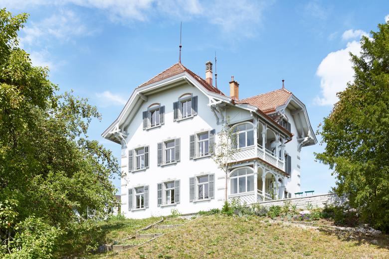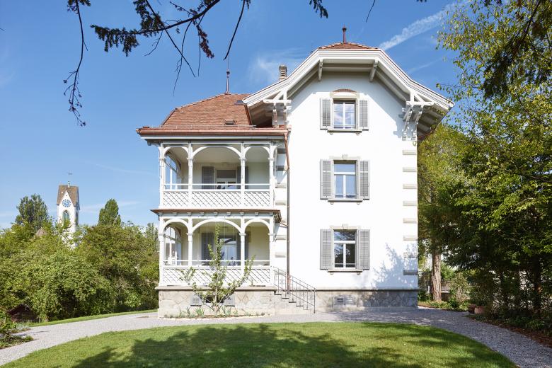 The listed Haus Zur Sommerau in Uetikon is situ­ated on a ridge in the immediate vicinity of school buildings, a community centre and the Uetikon Kirchenhügel. The property is defined by the large front garden with its bordered, circular “Brezelwegen”, garden beds, fences and historical garden gates and is a reminder of the prestigious buildings of the upper classes.