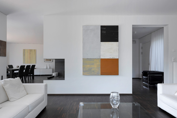 A purist garden space encloses the structure, transforms the interior into an exterior space and, in combination with a hedge, creates a high degree of residential intimacy.