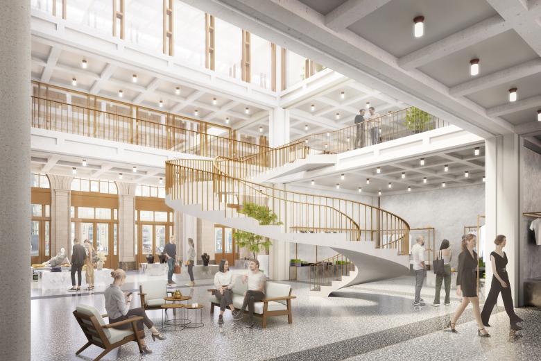 New retail spaces were made available in areas of the north wing of Zurich Main Station. An updated plan proposes the addition of a new food and retail area arranged around the existing atrium and allows for efficient circulation via a central staircase spanning two floors.