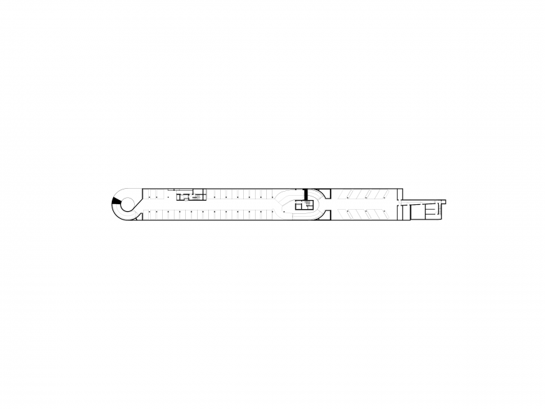 The commercial building integrates public underground Park & Ride facilities, as well as segments of the car wash. Commercial and retail spaces can be found on the ground level, while the attic accommodates a restaurant with expansive views over the lake.