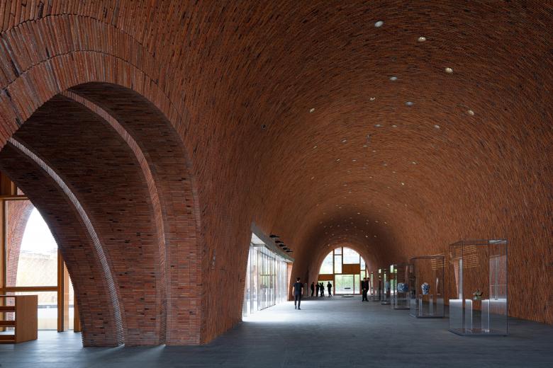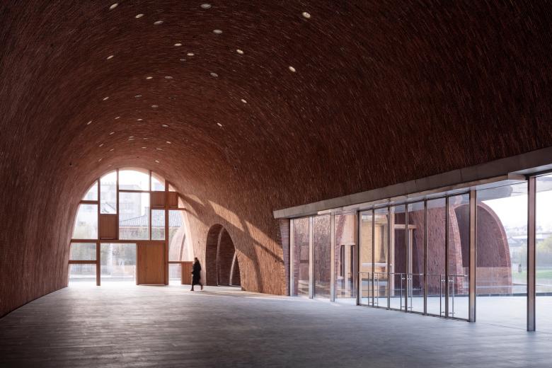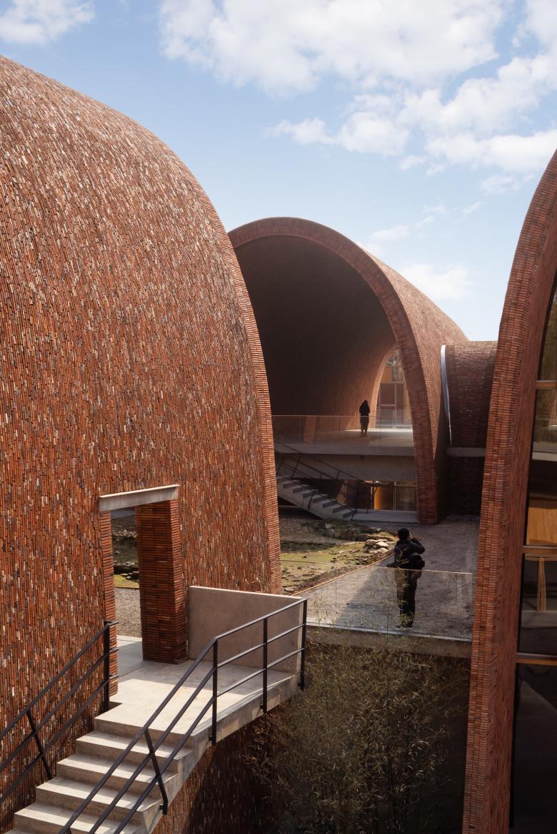 多个大小不一、体量各异砖拱布局,它们若近若离,萧萧如落木,营造出轻松、偶然、手工、自然的氛围,游走于虚实相生的砖拱与院落之间,人们可以感受到既熟悉、又陌生的一种空间经验。