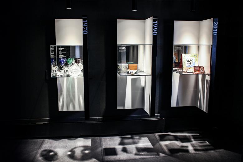 Der Fokus des gestalterischen Konzeptes liegt auf der bildlichen und spielerischen Erfahrung der Besucher:innen anhand von analogen Hands-On Elementen oder digitale Medien. Texte und Infografiken werden erst auf den zweiten Blick sichtbar. Die Besucher:innen gehen animiert durch die „Wissensfarbe“ Gelb, auf Entdeckungsreise.