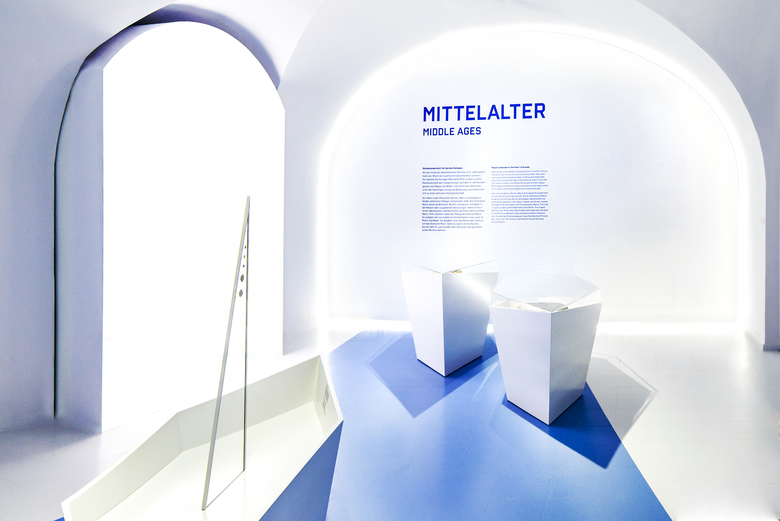 Beispielsweise wird der Zeittunnel von einer, für die vorhandene Architektur der Festung Ehrenbreitstein passenderen, Lichtinstallation abgelöst. Die Zeitschleusen sind hinterleuchtete Stoffelemente, die eine Aneinanderreihung der streng aufeinanderfolgenden Themenräume der Kasematten im gleichmäßigen Takt unterbrechen. In der zentralen Sichtachse formen sie sich optisch zu einem Tunnel, der die Ausstellung verbindet und ebenfalls im Sinne der Zeitreise, die Besucher in sich hinein zieht.