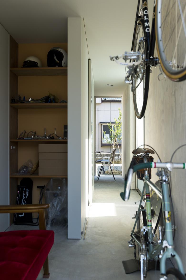 バイクや自転車、家具、そして色々な素敵な小物で満たされた土間空間。