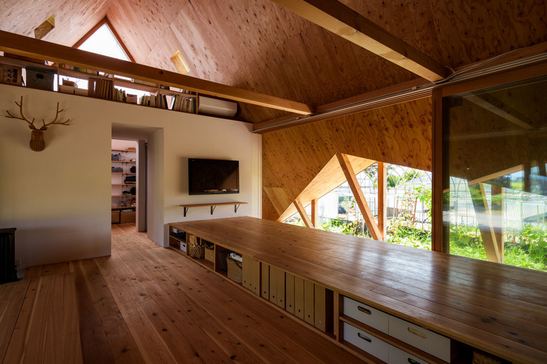 収納や仕切り、個室をできる限り取り除き、大きなワンルームとし、不足やはみ出しを他に頼らざるおえない状況とし、既存建築の利活用を促し、決して一個では完結しえない、建築群としての家づくり、暮らし方を目指した。