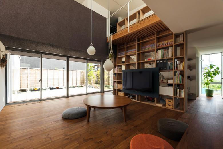 大きな本棚のある大きなワンルームと、本を落ち着いて読むことのできる多様な拠り所。