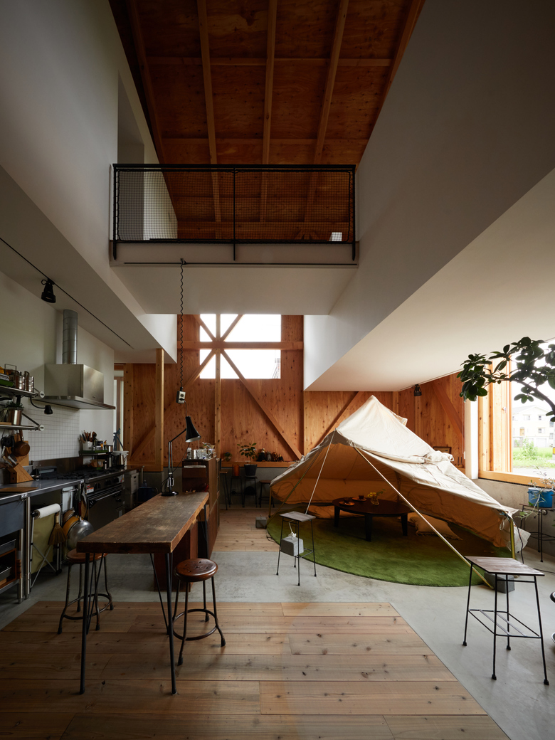 大きな居室の周りにテラスや縁側といった細く小さなバッファスペースを配し、屋外との緩衝スペースとするのではなく、むしろそのバッファスペースを主空間とし最大化し、その快適性/快楽性を大きく享受することを目指した。