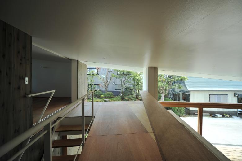 また、北西からの風雪により軒先に出来てしまう雪庇の位置を想定し、その下にはメンテナンス用を兼ねたテラスを計画した。