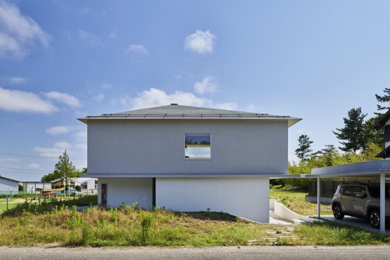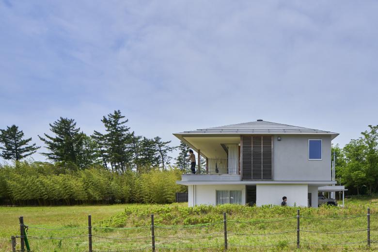 古くからの高密集落を抜けた先の広大な原っぱを敷地とし、夫婦2人と子供が住む住宅を計画。