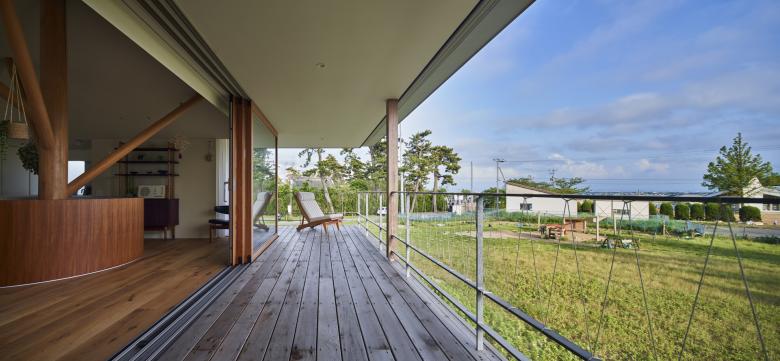 原っぱとLDKが連続する屋外のような開かれた環境を作ることに寄与している。