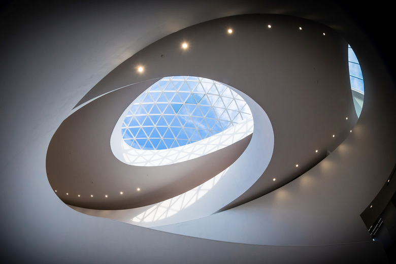 トップライトと有機的な螺旋の構成、その象徴的な上昇の空間性がアフォーダンスを発生させ、人々の動きを誘導する。トップライトフレームは軽快に見せるために50mm幅のフラットバーの全溶接とした。設計段階のシミュレーションにより、風の力で重力換気による自然換気が行えるシステムを採用。建物全体に心地よい風が流れる仕組みだ。