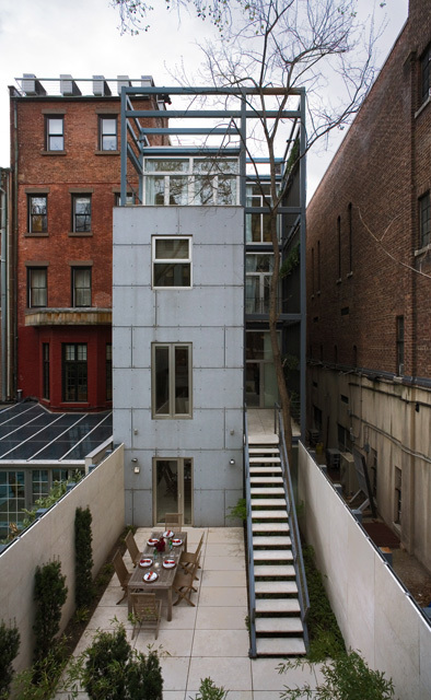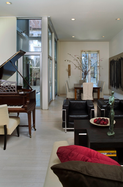 Expanding livable space appealing to modern aesthetics is a primary design challenge in townhouse renovation. In our renovation of this 61st street townhouse, the interior and rear walls were removed and reconstructed. White stained maple and polished steel adorn the new interior. The clear spatial configuration, innovative glass addition, use of natural materials work in harmony to redefine a modern townhouse.