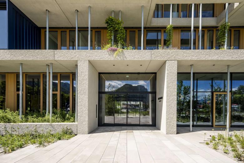 Das Haus ist eingebettet in einen großzügig bepflanzten Außenbereich, begrünte umlaufende Balkonplatten bieten Vorgärten in allen Geschoßen.
