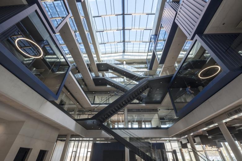 Die Heizenergie wird durch Wärmepumpenanlagen bereitgestellt, die sowohl Grundwasser als auch elektrische Energie, die mittels einer großflächigen PV-Anlage am Gebäude bereitgestellt wird nutzen.