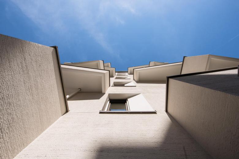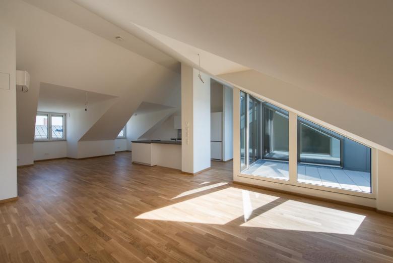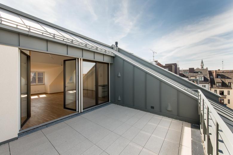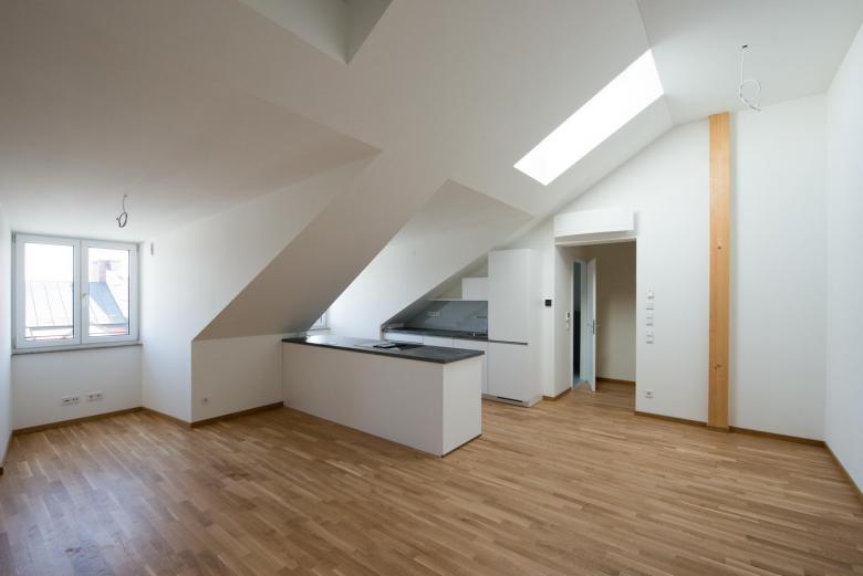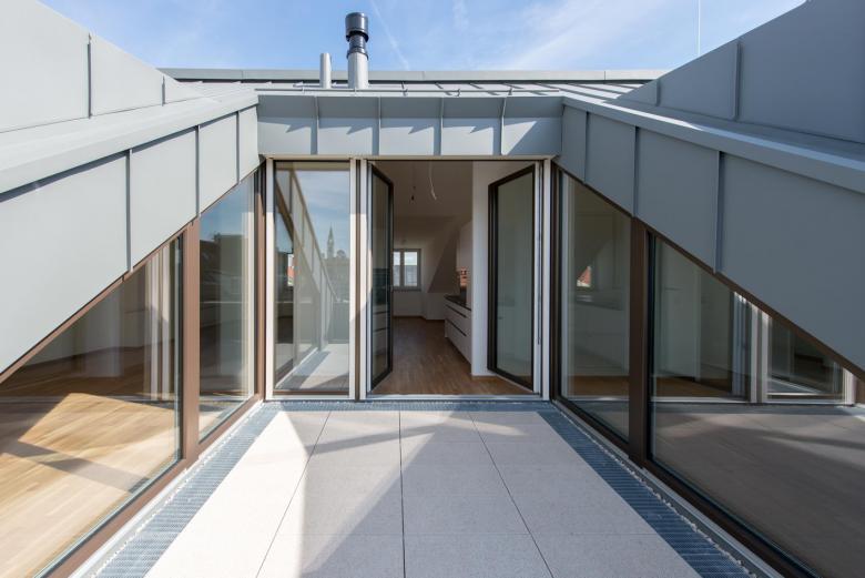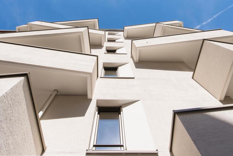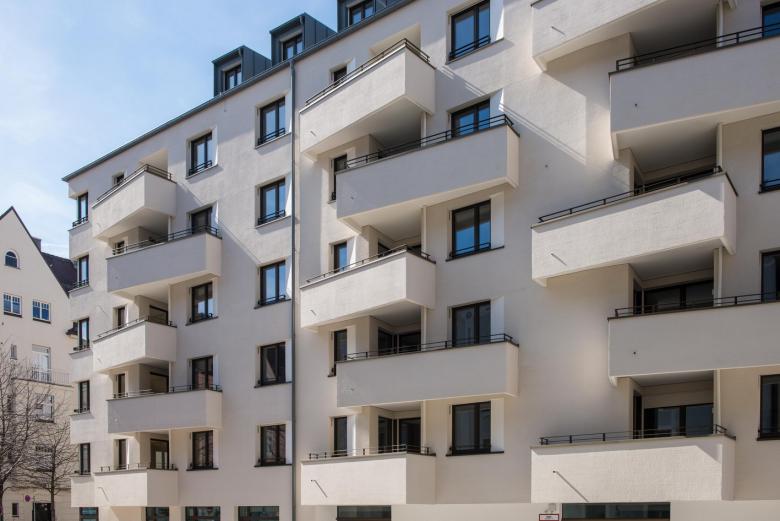 Entstanden sind 33 unterschiedlich große Wohneinheiten in den Obergeschossen und dem Dachgeschoss, im Erdgeschoss befindet sich eine gewerbliche Nutzung (ein Ladenlokal) mit einer erhöhten Raumlichte.