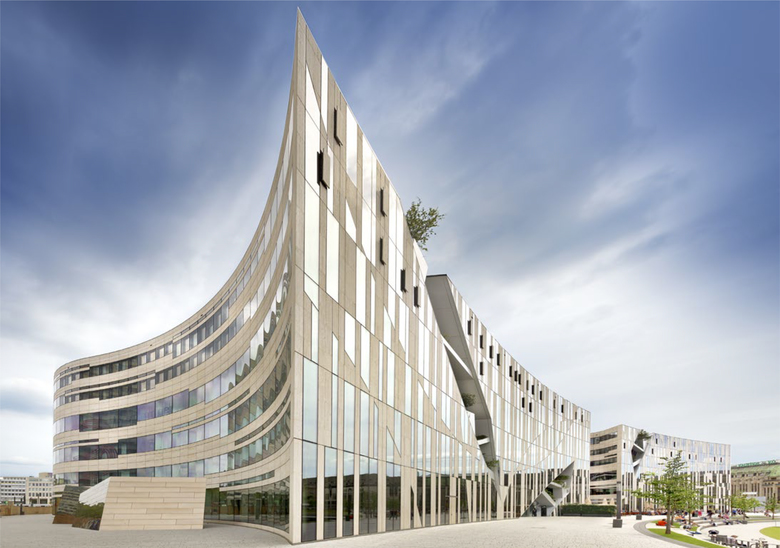 The Kö-Bogen won the prestigious MIPIM award. Even from afar the observer can see why but also when he takes a closer look.