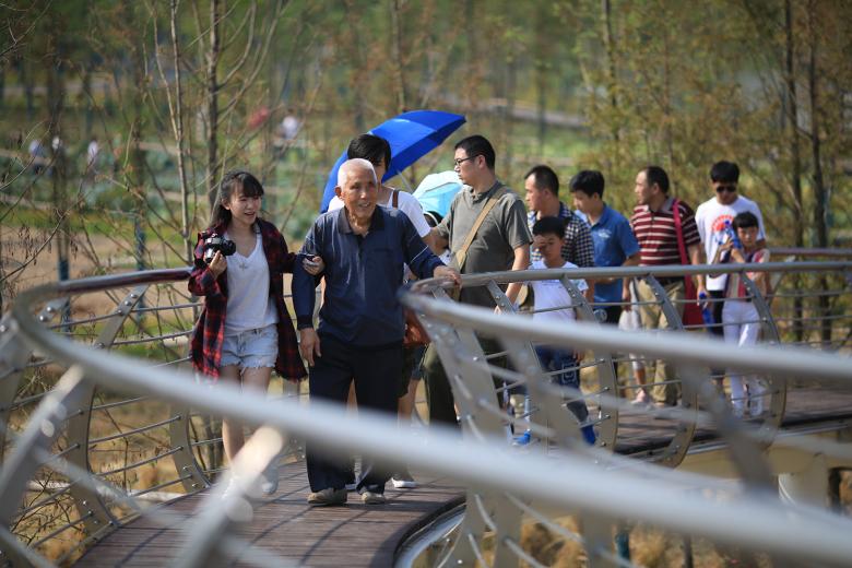 第三,场地内设计了一座架高4米的玻璃廊桥,供游客登高远眺,使得公园北部的考古遗址尽收眼底。用玻璃作为桥面材料,可以使阳光穿透,保证其下方的农作物有充足的日照。如此,沿桥散步也成为一种奇妙的探险。玻璃廊桥通过四个方向的四个坡道来增强桥身的稳定性,并增加了桥与四方田埂的连通性。玻璃廊桥吸引了大量游客,特别是儿童和学生,使原先单调乏味的农业景观变得更令人兴奋且富有娱乐性。