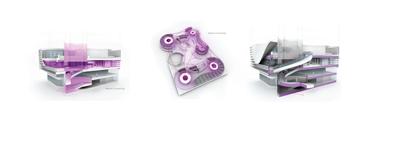 The building is designed to use the creative enterprise of the school to facilitate cross-disciplinary interaction between the professional world, the campus, and the community at large.