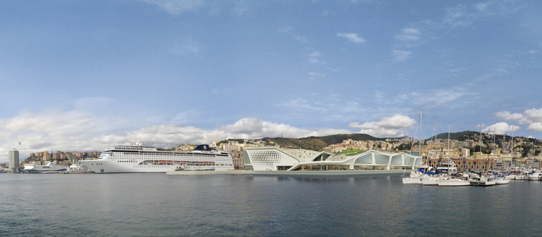 Linking – Located in a key position between the commercial harbour, the Porto Antico area and the historical centre, Ponte Parodi - with its large public space (total 132,200 m2) - creates a meeting point for the various users in this part of the city; first and foremost the Genoese inhabitants and students from neighbouring universities, but also cruise travellers and visiting tourists. The three storey building merges with the local urban and economic fabric, whilst simultaneously creating an attraction for the various resident and visiting segments of the public. The design further incorporates the wider morphology of the urban fabric, the topography of the region and the recent physical, economical, and political developments of the harbour as a public area for the city of Genoa.